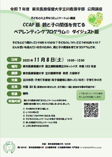 11/8(土)公開講座「子どもとの上手なコミュニケーション講座」開催のご案内