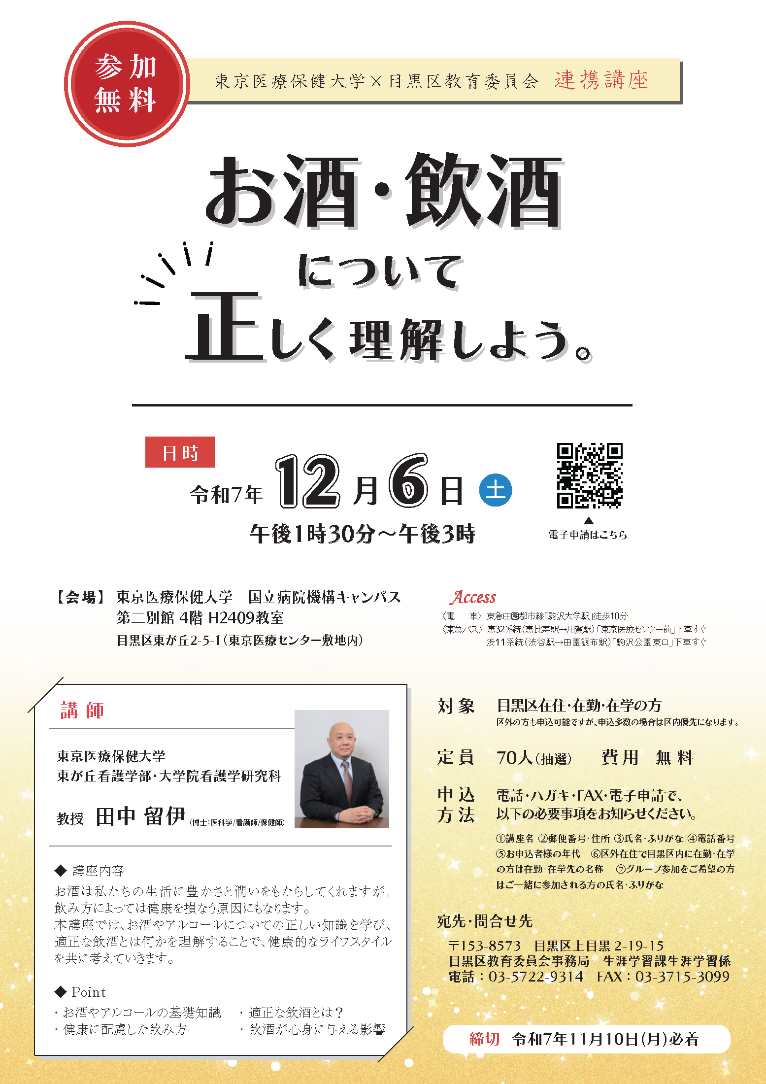 令和7年度 東京医療保健大学×目黒区教育委員会 連携講座を実施します。