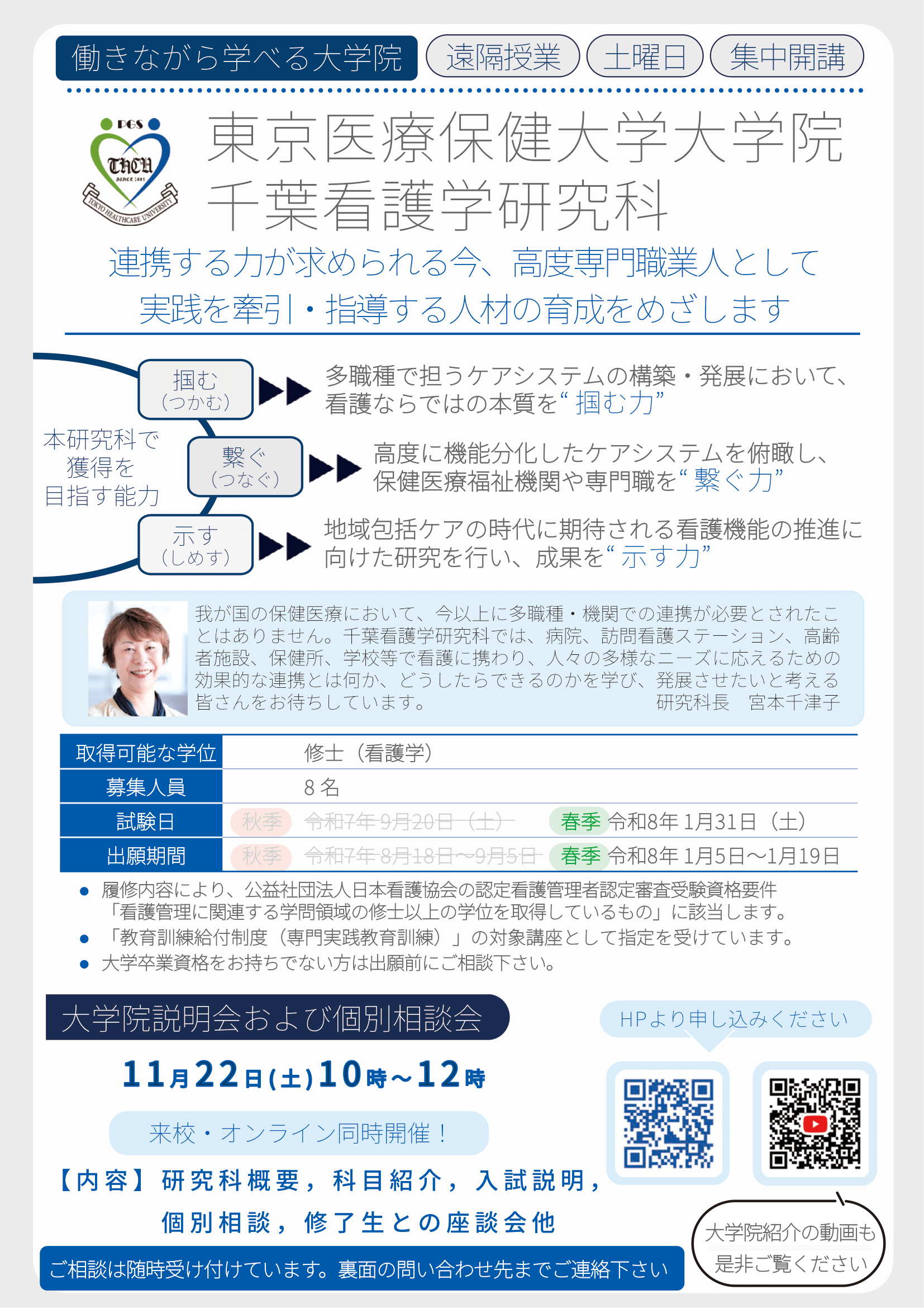11/22(土)説明会・個別相談会のご案内(大学院:千葉看護学研究科)