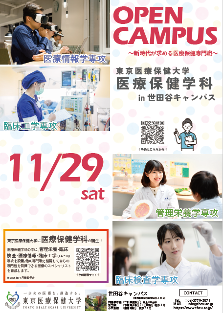 下記日程で、2026年4月より開設予定の【医療保健学部 医療保健学科】の各専攻の学びを体験できる、学科体験・見学会を実施いたします。