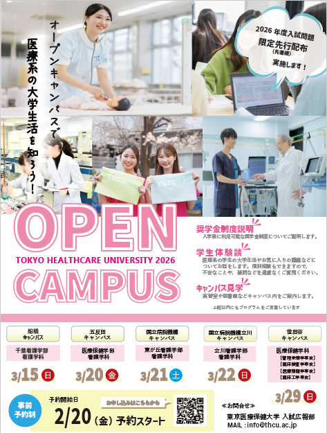 ・医療保健学部医療保健学科:3/29(日)開催時間は後日公開予定 【世田谷キャンパス】