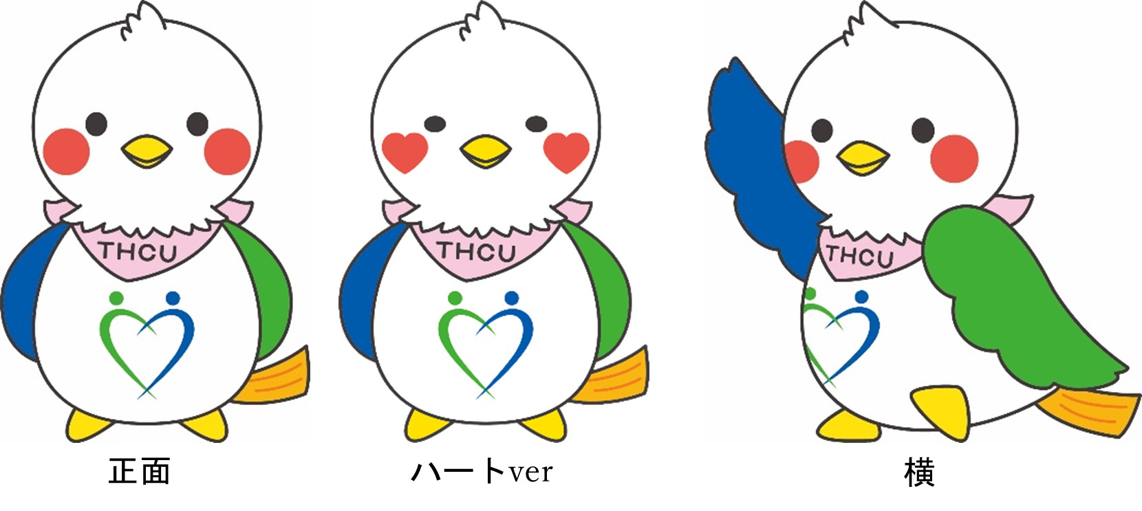 「Toppy」は、“to people”へのオマージュとして名付けられた、幸せを運ぶ鳥のキャラクターです。東京医療保健大学のエンブレムをモチーフにし、カラフルな体で多様性を表現しています。ピンクのバンダナには、優しさと親しみやすさへの思いが込められています。