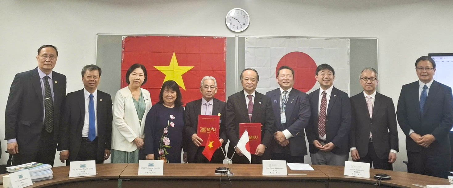東京医療保健大学は、2026年4月17日、ベトナム・メコン大学(Trường Đại học Cửu Long/クーロン大学)のルオン・ミン・クー学長(東京医療保健大学客員教授)一行を迎え、亀山周二学長との会談を行うとともに、両大学学長間で単位互換協定を締結しました。